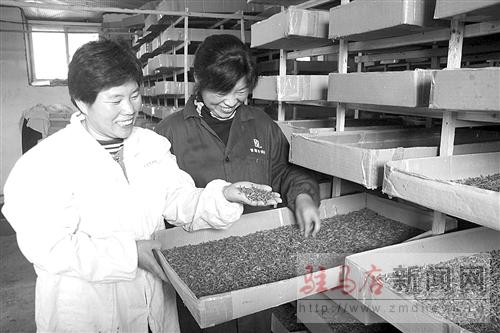 河南金元農(nóng)業(yè)科技有限公司是一家集培育養(yǎng)殖、技術(shù)服務(wù)于一體的現(xiàn)代化企業(yè)。年可繁育優(yōu)質(zhì)生豬近萬頭、金蟬1萬公斤、獺兔1萬只、土元1.2萬多公斤、黃粉蟲5萬多公斤、金銀花4萬公斤,可安排就業(yè)人員56人,并帶動(dòng)了周圍100多戶農(nóng)民致富。圖為公司管理人員正在查看黃粉蟲生長情況。記者 王 朝 攝