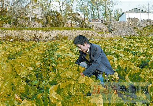 摘要: 上蔡縣西洪鄉(xiāng)南董村村民董松柏利用廢棄的池塘,把白菜和蘿卜進行間作套種,不僅利用了廢棄池塘里的養(yǎng)分,還增加了收入,蔬菜長勢良好。圖為11月21日,董松柏正在對蔬菜進行管理。 記者 張 靜