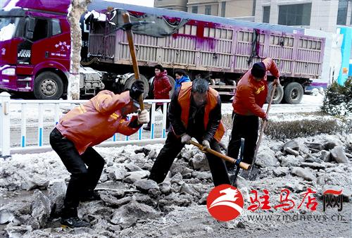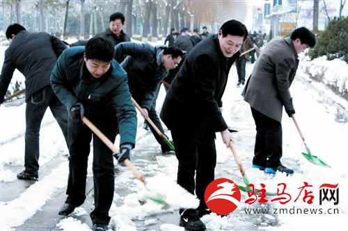 市委辦公室工作人員在清理道路積雪。晚報(bào)記者 李玉榮/攝