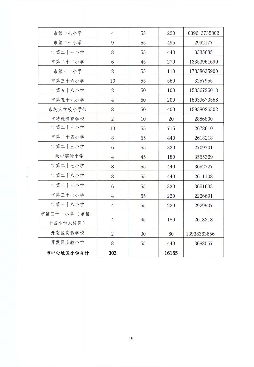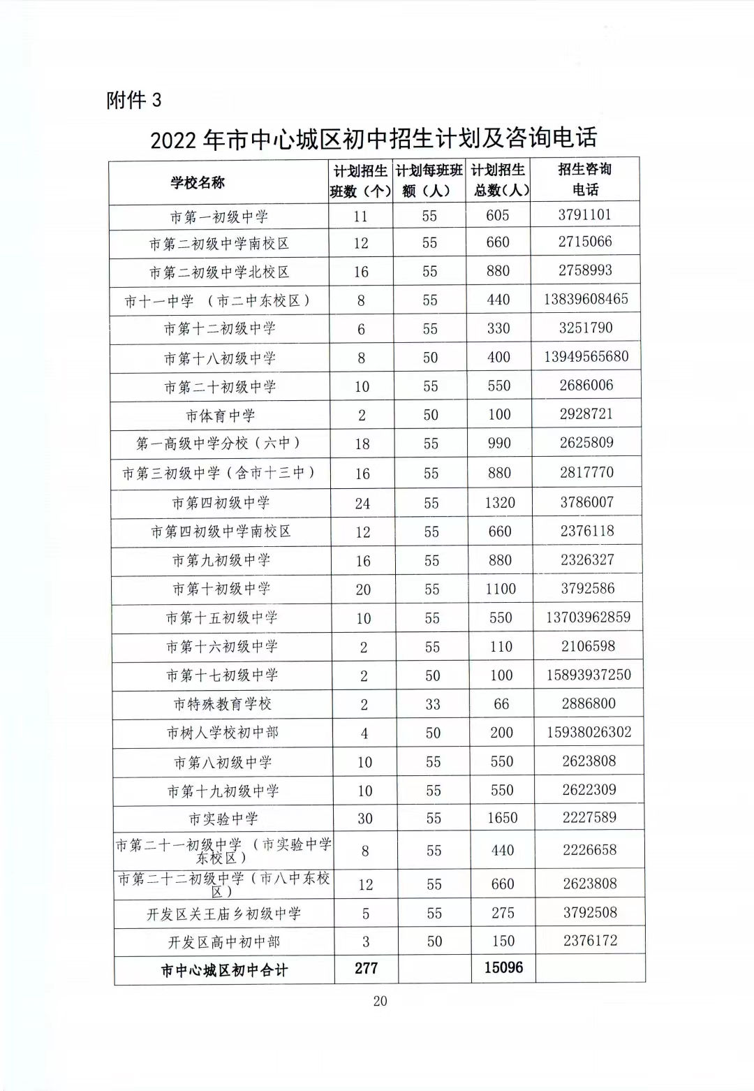 3.2022年市中心城區(qū)初中招生計劃及咨詢電話