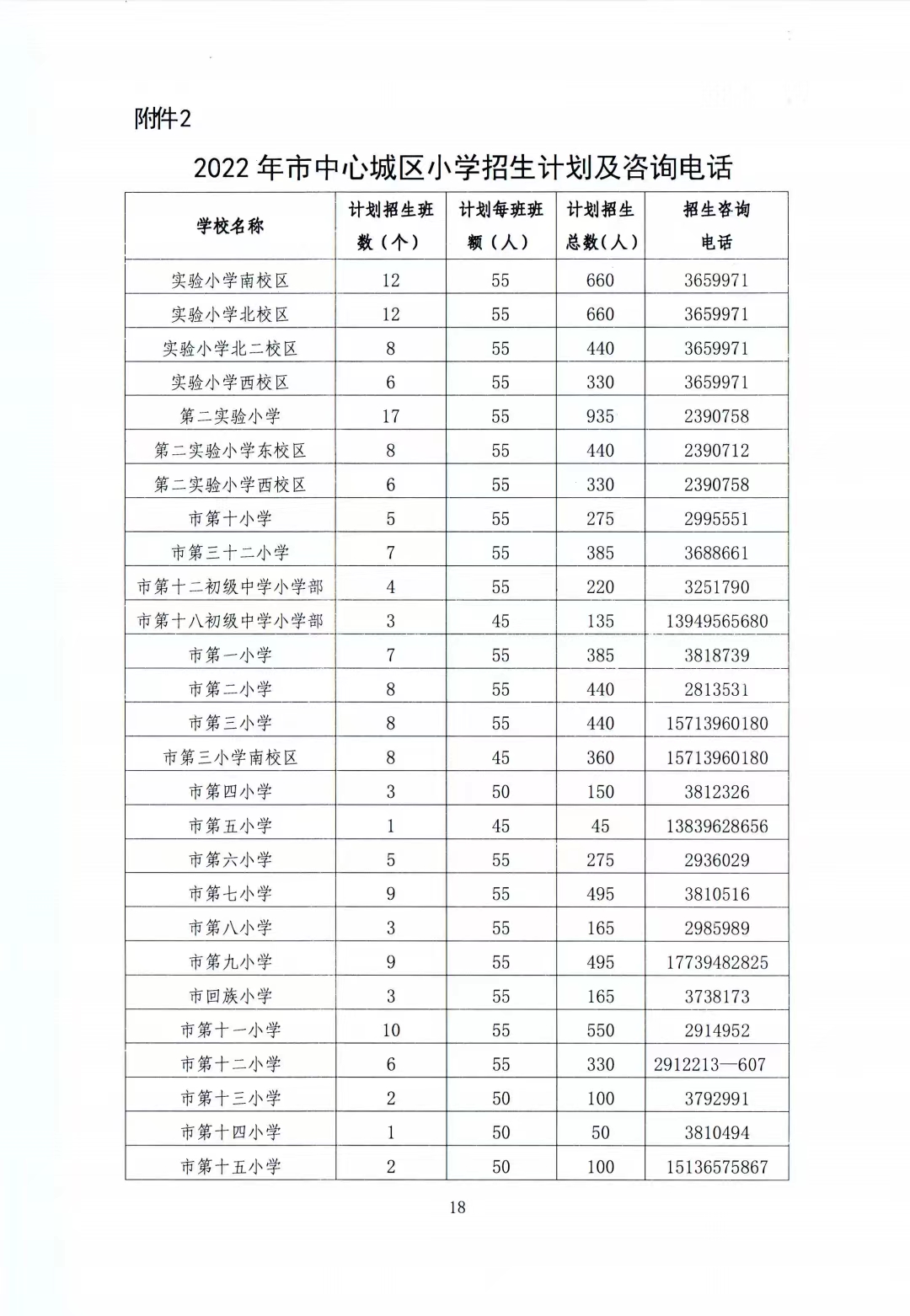 2.2022年市中心城區(qū)小學(xué)招生計劃及咨詢電話