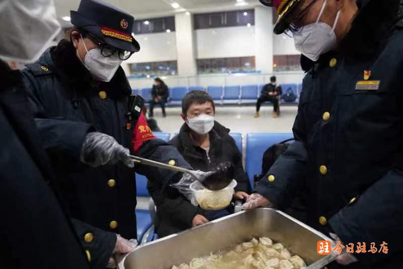 摘要:除夕夜的駐馬店火車站沒有了春運人潮涌動的熱鬧和喧囂,廣播里傳出的《過年啦》歌曲,仿佛提醒遲歸的人們今天是除夕夜。為了讓除夕夜仍在歸途的旅客體驗到過年的氛圍,感受家的溫暖,減輕思鄉(xiāng)之情,駐馬店車務(wù)段在駐馬店火車站、駐馬店西站等客運站,開展為每位旅客送上一碗暖胃餃子和一張暖心??ǖ摹半p暖”活動。