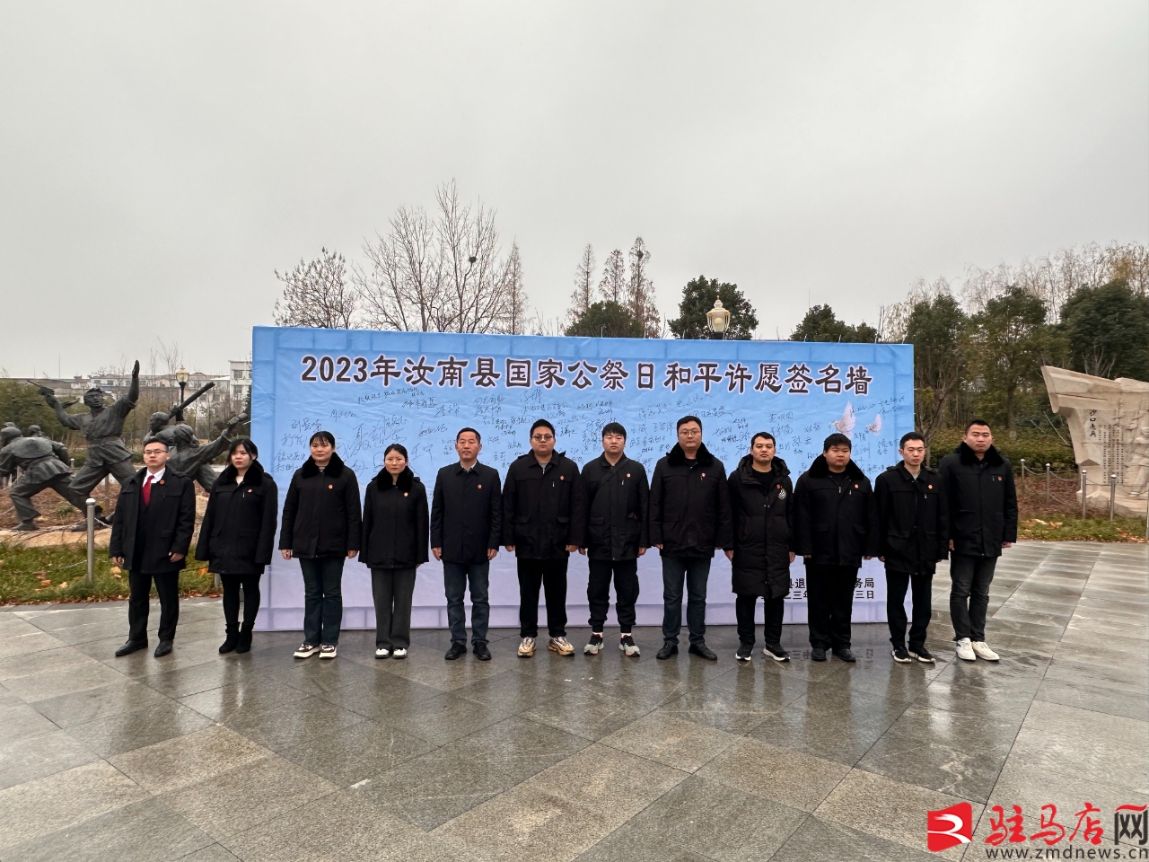 12月13日,汝南縣人民法院干警們頂著寒風(fēng)早早地來到紅星廣場參加“國家公祭日”紀(jì)念活動(dòng),活動(dòng)現(xiàn)場莊嚴(yán)肅穆,伴隨著莊嚴(yán)的國歌聲,青年干警代表們手持鮮花,神情凝重地面向革命烈士雕像肅立、默哀,并向英烈獻(xiàn)詞,表達(dá)對英烈和死難者的無限哀思,以尊崇之心珍視和平、以民族之力矢志復(fù)興。默哀結(jié)束后,大家還參加了“汝南縣國家公祭日和平許愿簽名活動(dòng)”,在簽名墻上寫下了自己的名字。