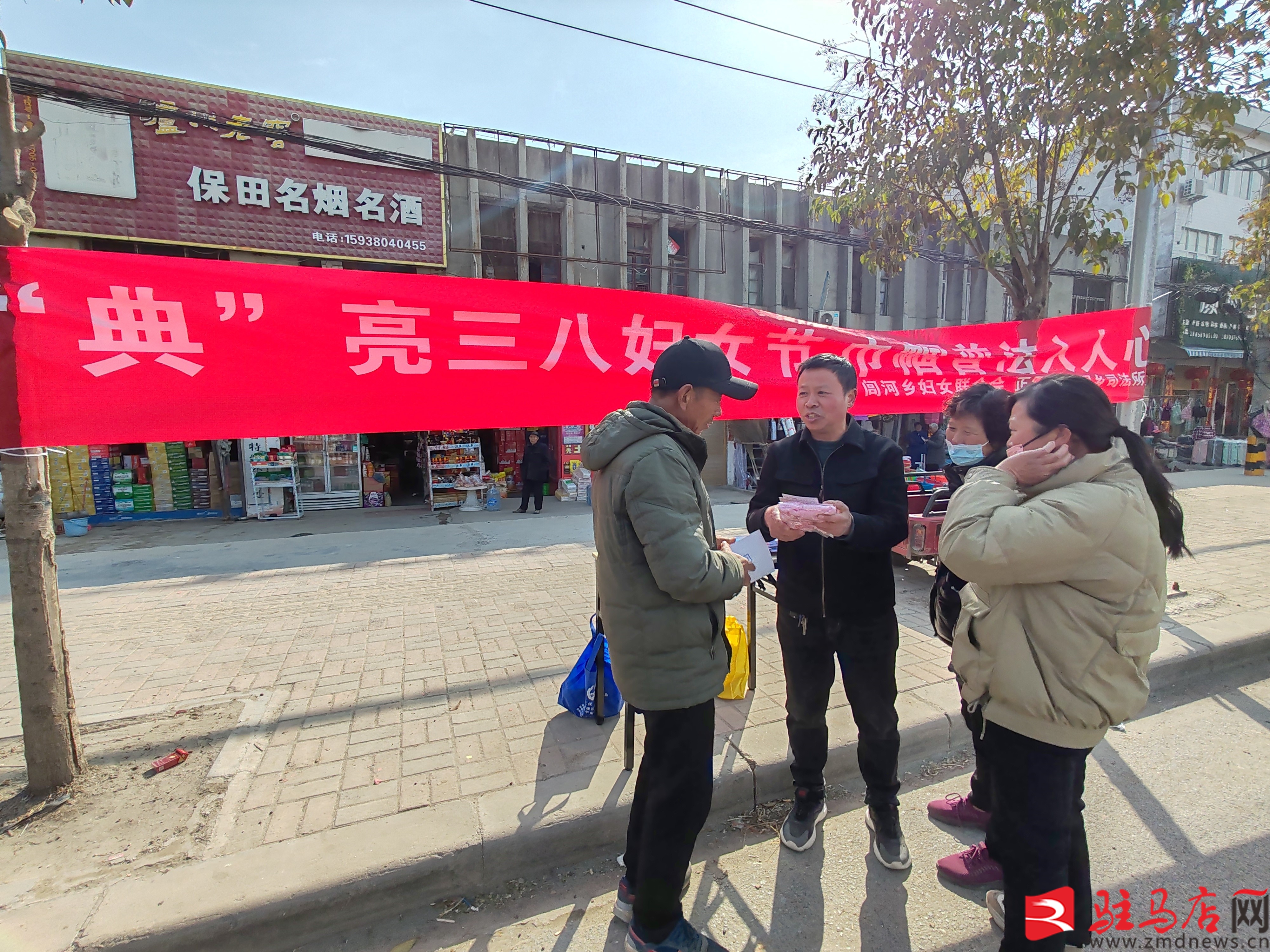 在街道邊,閭河司法所工作人員懸掛橫幅、發(fā)放普法宣傳冊、為來往婦女群眾面對面答疑,積極向群眾普及《中華人民共和國民法典》《中華人民共和國婦女權(quán)益保障法》《中華人民共和國反家庭暴力法》等法律法規(guī),并詳細(xì)解答婦女群眾普遍關(guān)心的勞動保障、婚姻家庭、贍養(yǎng)繼承、人身保護(hù)、法律援助等法律問題,鼓勵和引導(dǎo)廣大農(nóng)村婦女群眾在自身合法權(quán)益遭受侵害時(shí)要保持冷靜,不采取過激行為,敢于拿起法律武器理性維權(quán),樹立自尊、自立、自強(qiáng)精神。