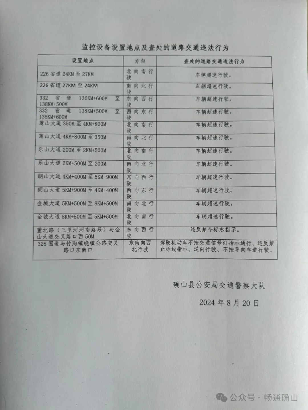 8月20日,確山縣公安局交通管理大隊發(fā)布關(guān)于在328國道、226省道金城大道等路段增設(shè)交通技術(shù)監(jiān)控設(shè)備的公示: