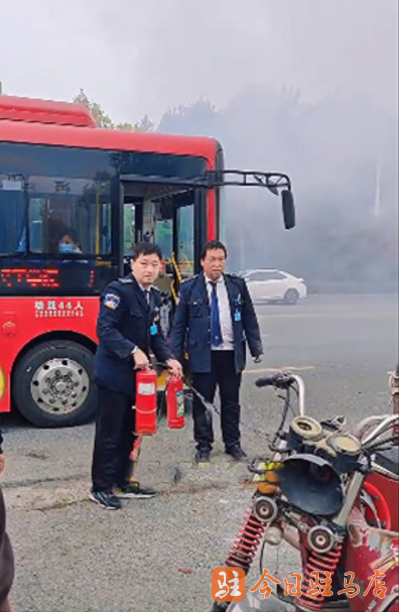 路遇電動三輪車起火 兩位公交車長英勇救火